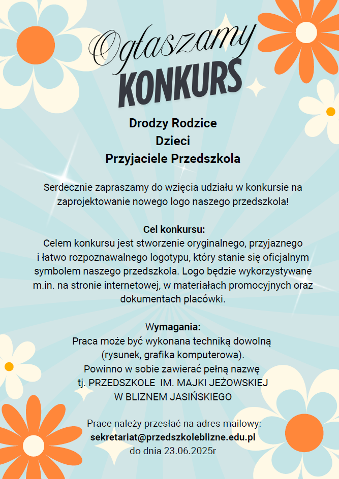 „ PRZEBOJOWE PRZEDSZKOLE 2025 ” zorganizowanego przez Przedszkole w Bliznem Jasińskiego pod Honorowym Patronatem Wójta Gminy Stare Babice. Jury w składzie: