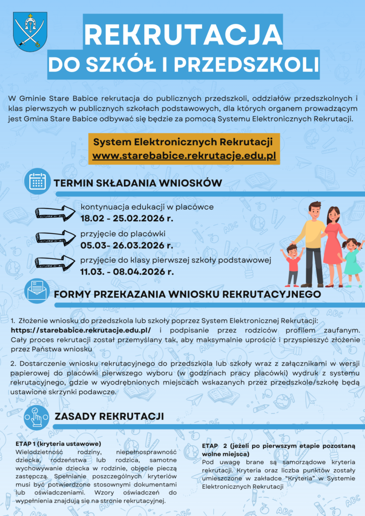 Organizacja dyżurów wakacyjnych w przedszkolach i oddziałach przedszkolnych w szkołach podstawowych prowadzonych przez gminę Stare Babice